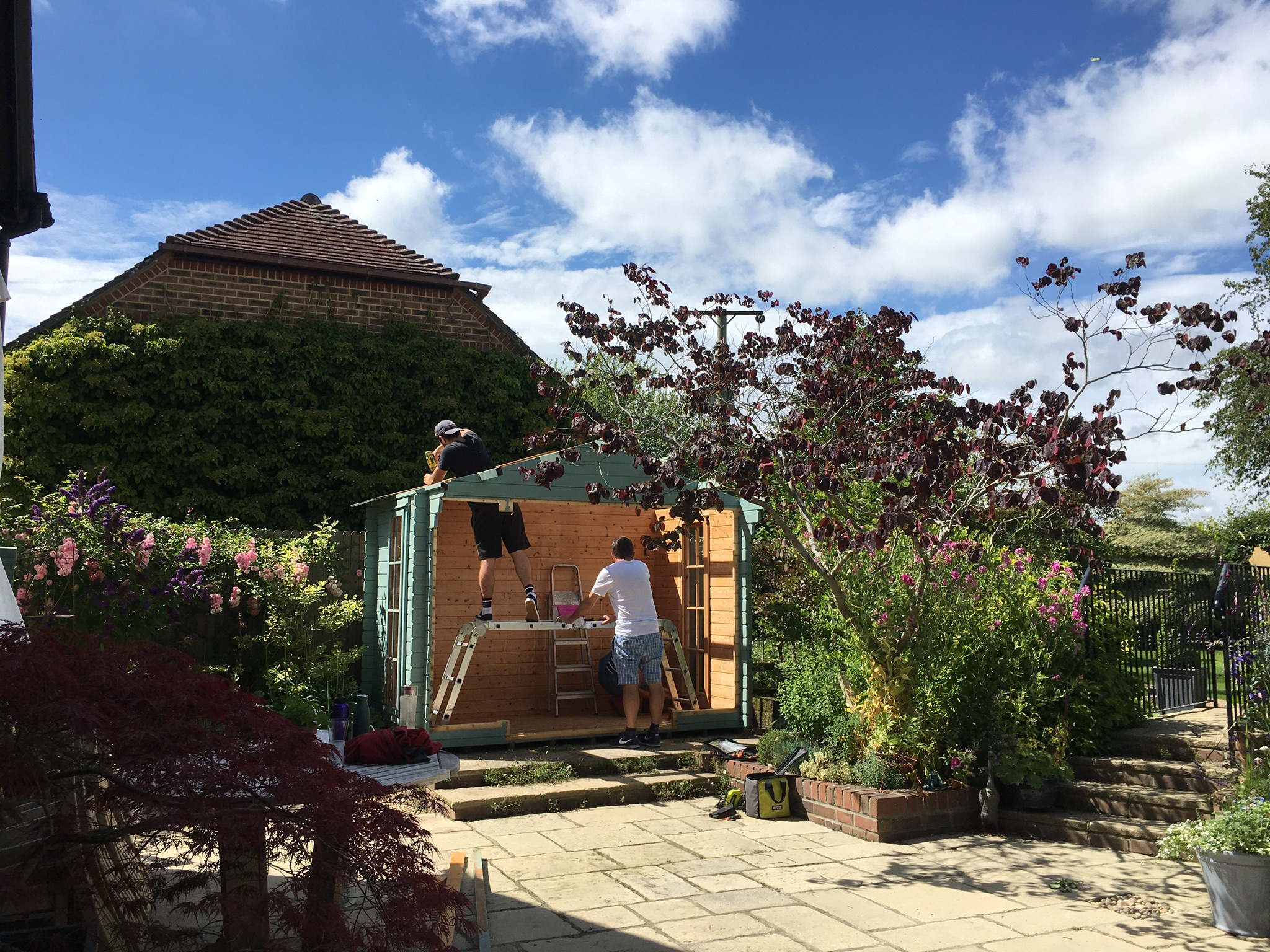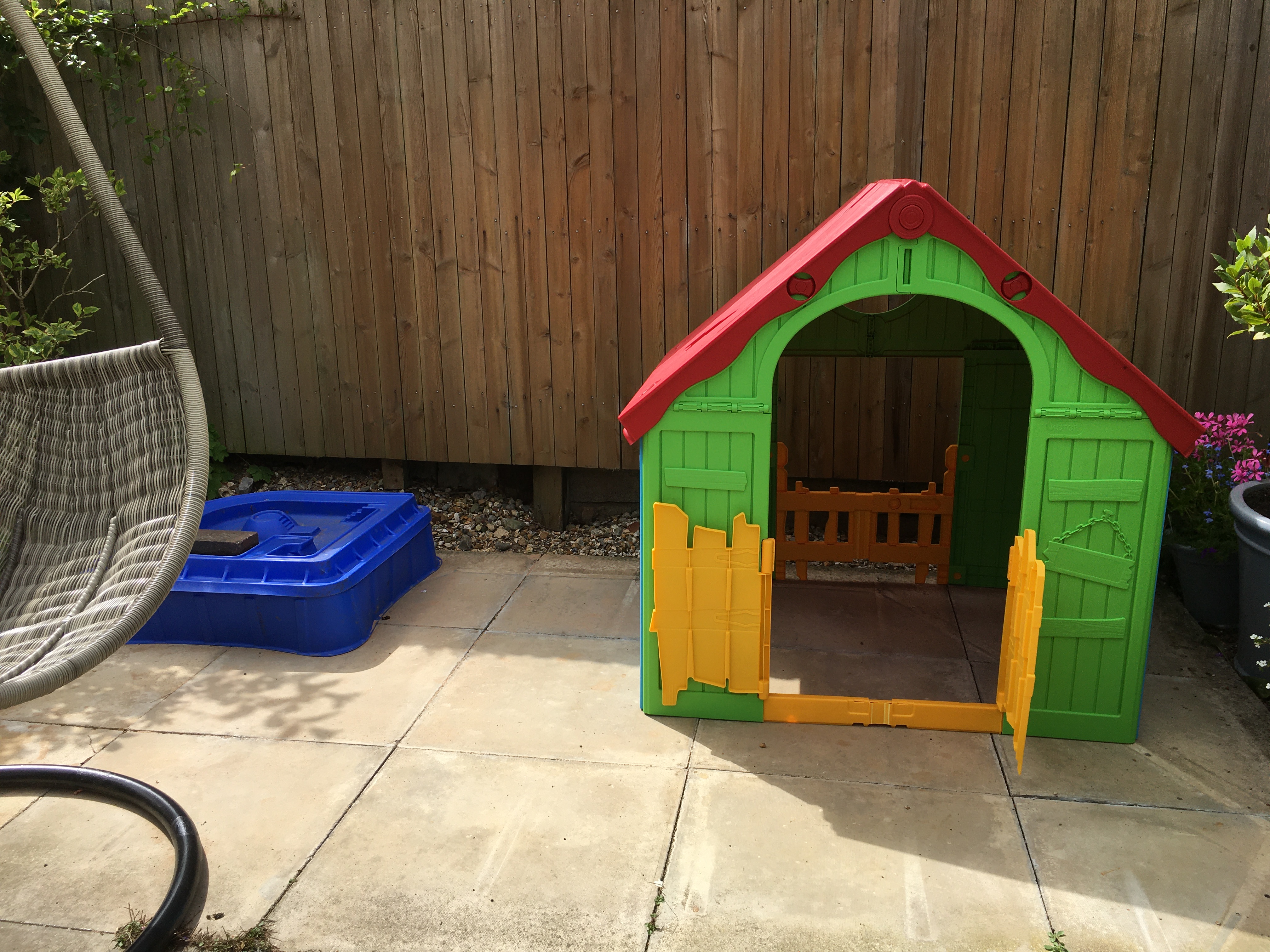 Their visit coincided with the sale of our old summerhouse leaving a useful empty hardstanding – perfect for sandpit, playhouse and essential swing chair to keep an eye on the little ones – before my new fully insulated ‘art studio’ is installed in a couple of weeks time.