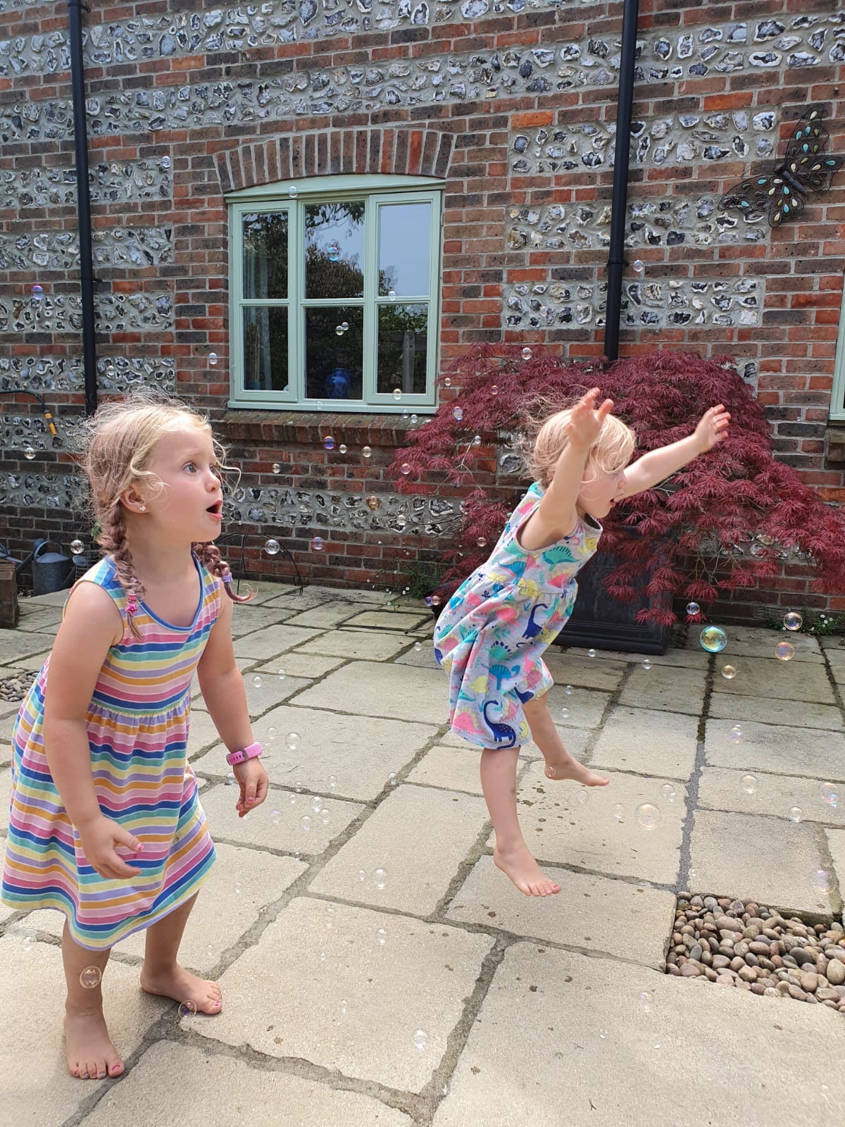 Other days were spent with their young cousin playing in the garden in and out of the paddling pool and making their own entertainment.