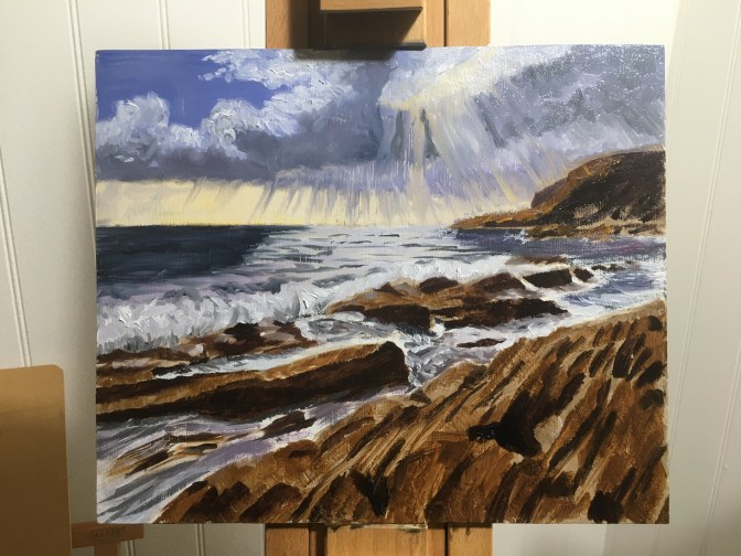 I shall end this post with a positive painting…. a seascape completed in approximately four hours in the studio using a palette knife, just to remind myself I can paint successfully sometimes!
