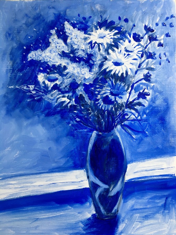 Up until three weeks ago I was painting in the studio almost daily to fill dull, short, cold, often wet days during this current lockdown while happily upstairs in the converted bedroom – now edit suite – The Long-suffering still worked from home.