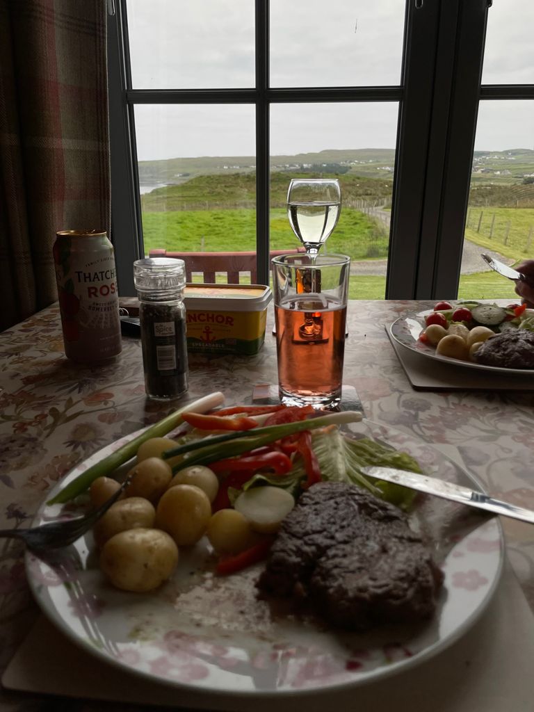 Crossing over the bridge to Skye we were eager to get to Staffin in the North East of the island and our base for the week. Plenty of head swivelling views were to be had along the way as we drove on narrow sometimes single track roads to our ‘crofters cottage’ one of two. Ours overlooked the sea in one direction and the Quiraing part of the Trotternish Ridge on the other. Beautifully furnished we would be comfortable and cosy for our weeks stay in this stunning of locations.