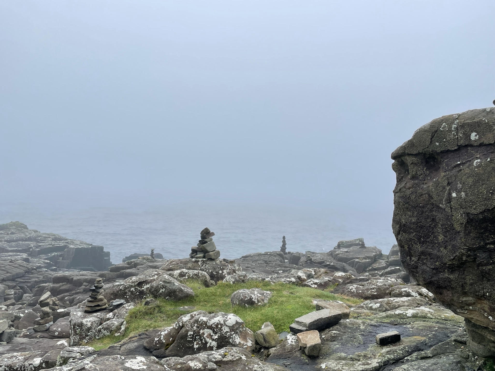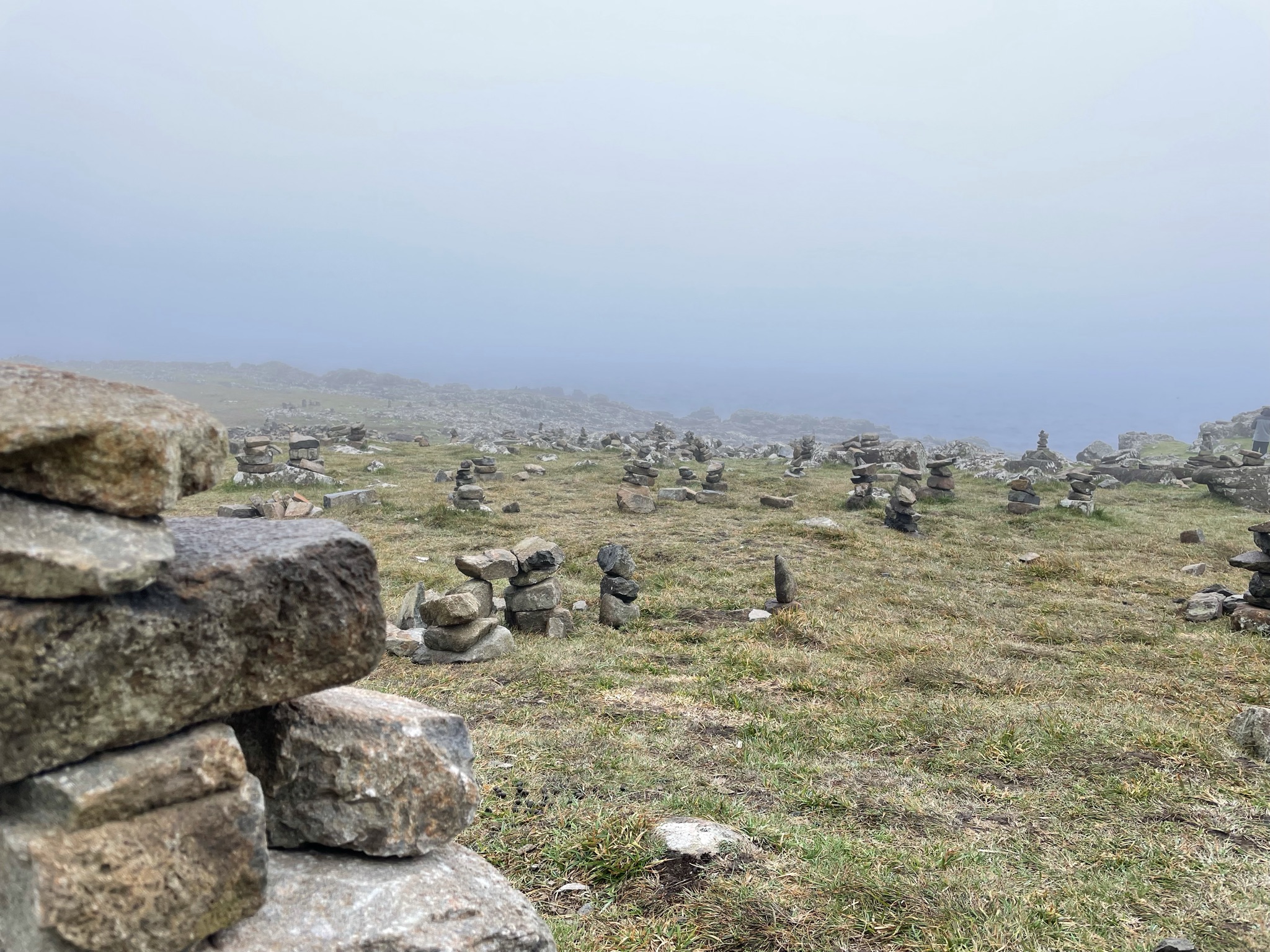 To the front of the Lighthouse flat areas were covered in rocks of all shapes and sizes. The many rock towers stacked up by visitors made for some eerie sculptures in the gloom.