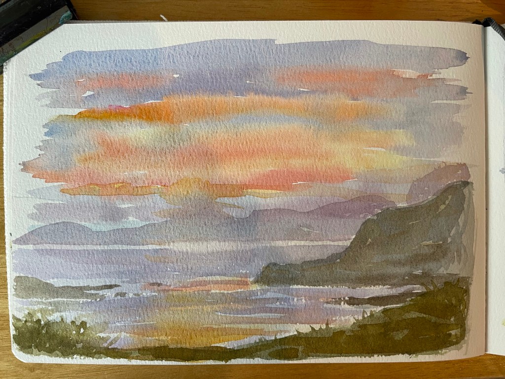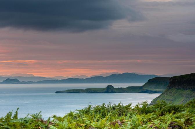 Day 5. After yesterday afternoons heavy rain we were eager to get out and about. Drawing back the curtains a beautiful sunrise looked promising, while Man behind the Lens headed off to Kilt Rock his muse painted the sunrise over the bay with mixed results!