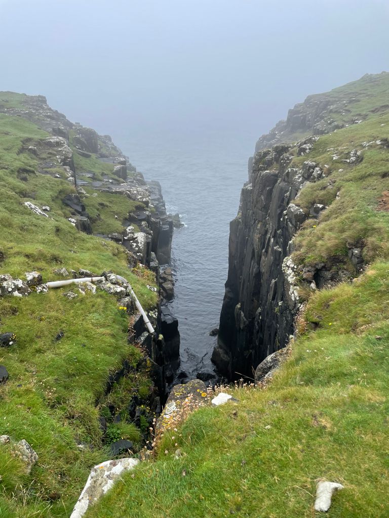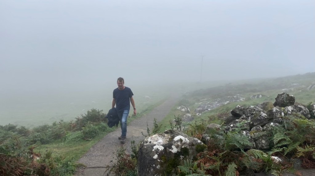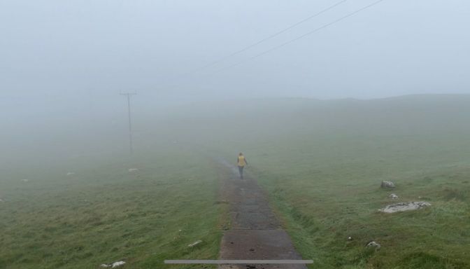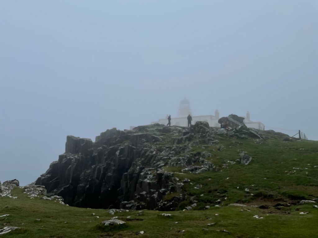 The single lane road there was shrouded in thick cloud/sea fog we thought of turning back but the driving conditions made that idea treacherous. Eventually we arrived at the parking area. There was nothing to see anywhere except dark shapes of many cars, occupants like us determined to tick this attraction off their list. One couple returning assured us it was worth the walk there.