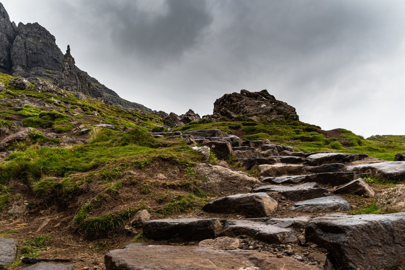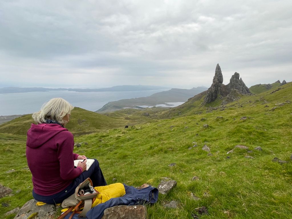 Part of the Trotternish ridge this iconic rock was created by a huge ancient landslide. The pinnacle rock ’Old Man’ can be seen for miles around on a clear day – most of our week on Skye it was hidden under low cloud and mist!