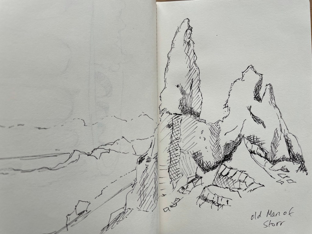 Finding our best view point we settled down to do our thing, a quick ink sketch from me…..