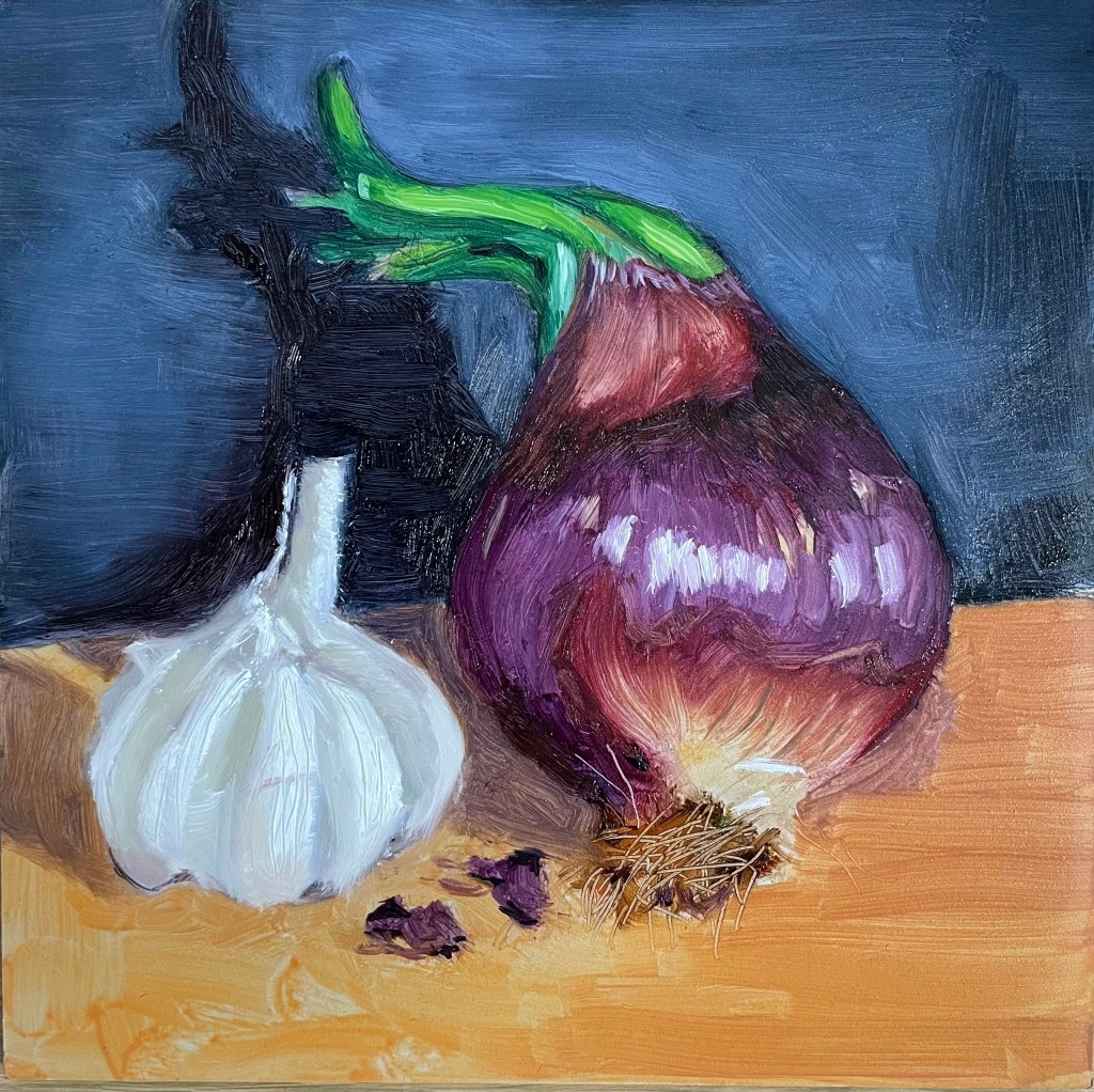 ‘Little Garlic, Old Onion’ oil on gesso panel 6 x 6 inches