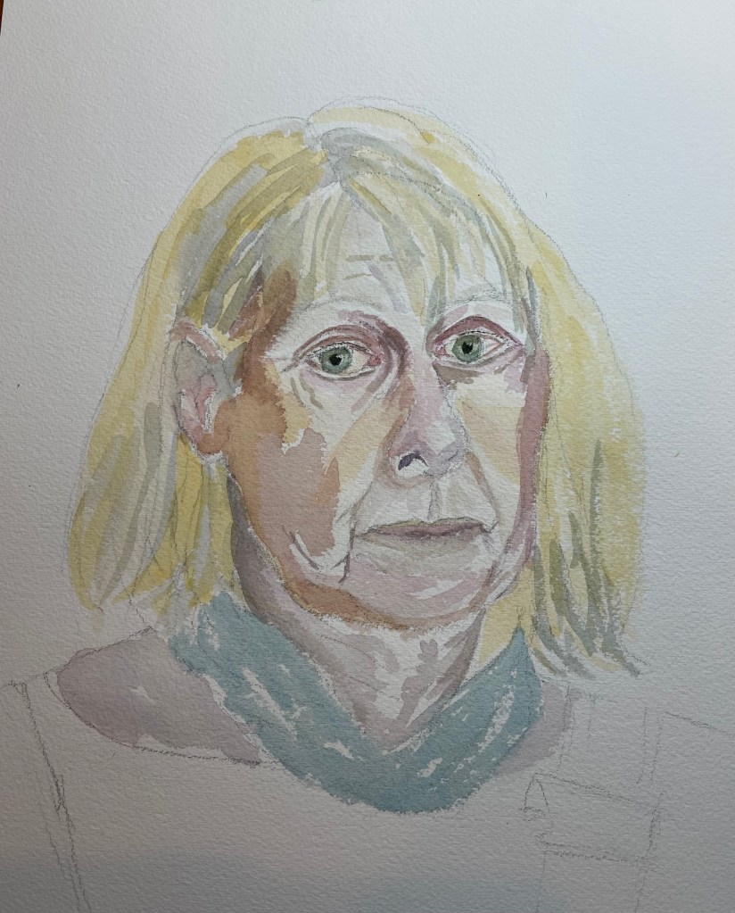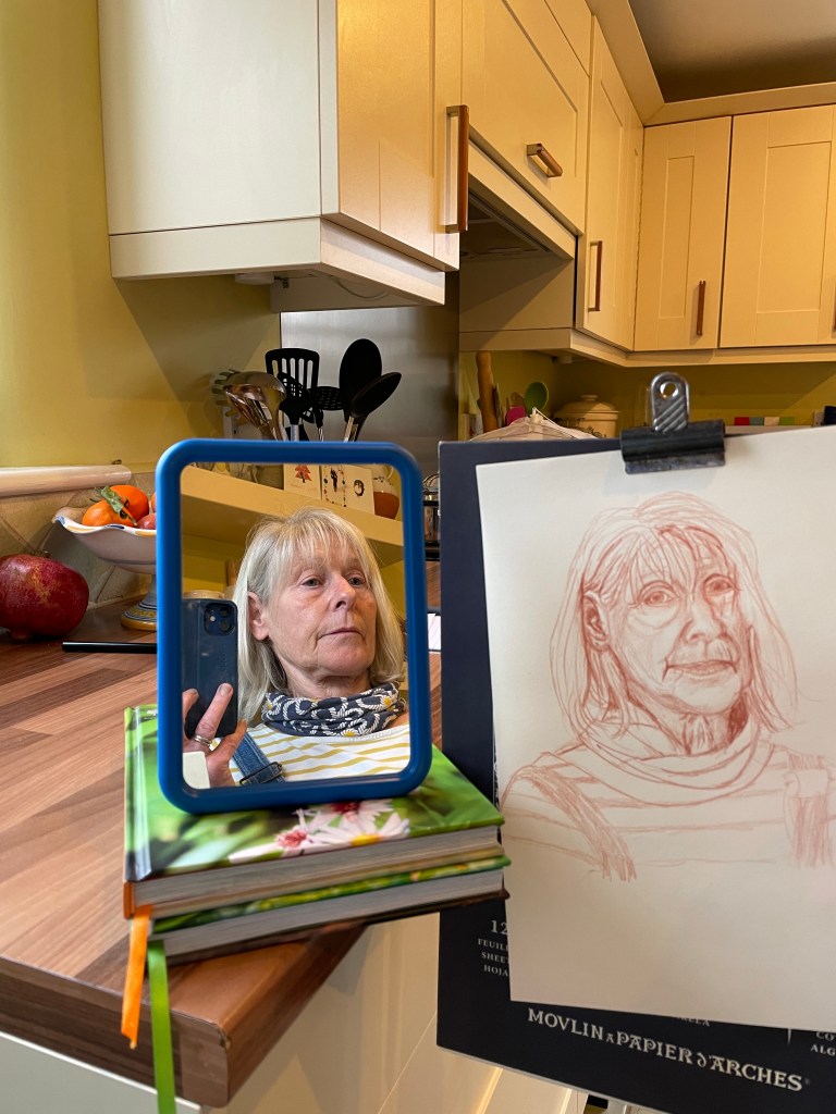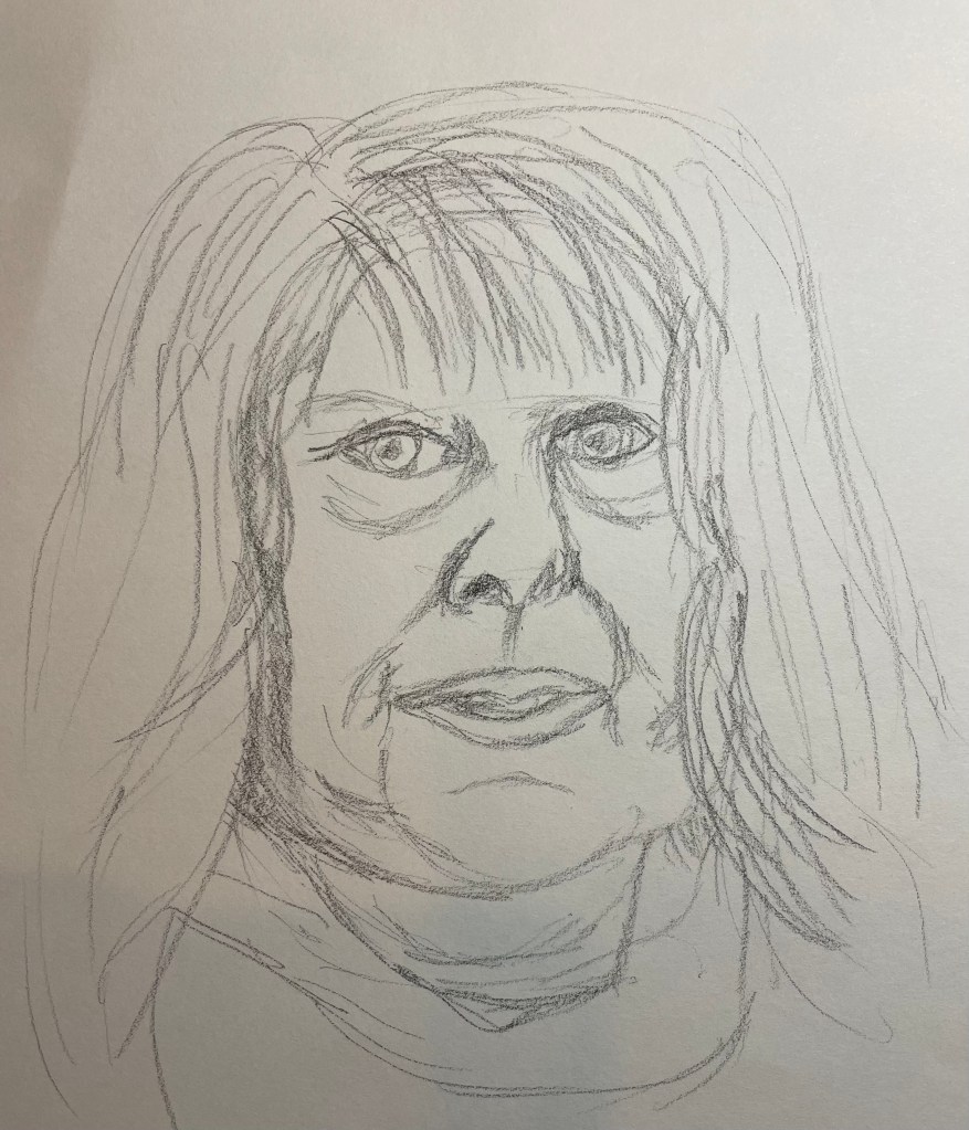 Evaluation then…. I feel reasonably happy with the proportions although the eyes again need attention, are they too big? To be honest I have found tackling a self portrait very hard.