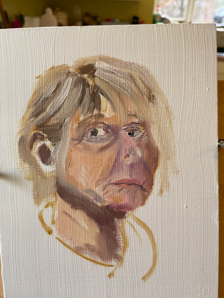 Quick decision another attempt at a self portrait, in oils this time! Straight in with the paint. They say the mirror does not lie well surely mine does, do I really look this bad in real life?
