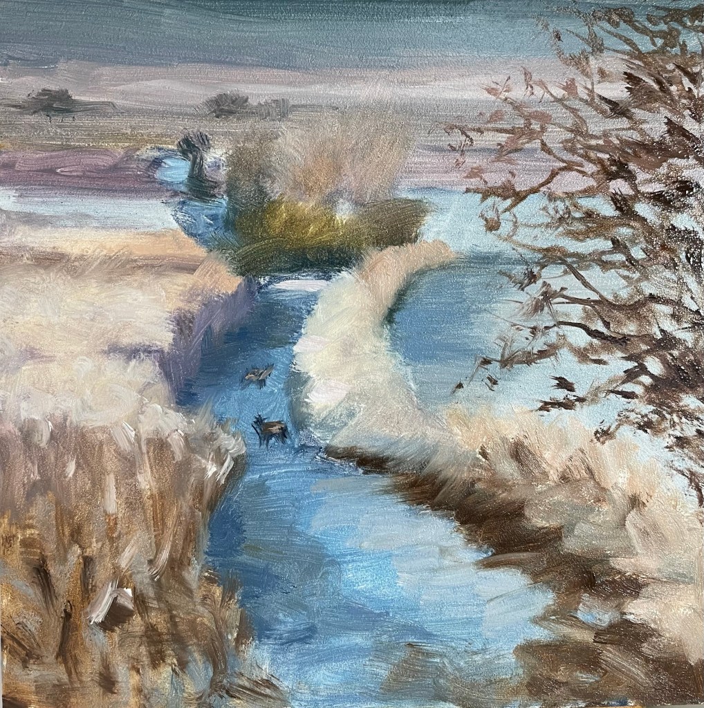 A quick little snow sketch today from a reference photo with kind permission of Peter Wood. I have given in and painted from a photo as here in Dorset there is not any sign now or for a while of any snow or frosts for that matter!