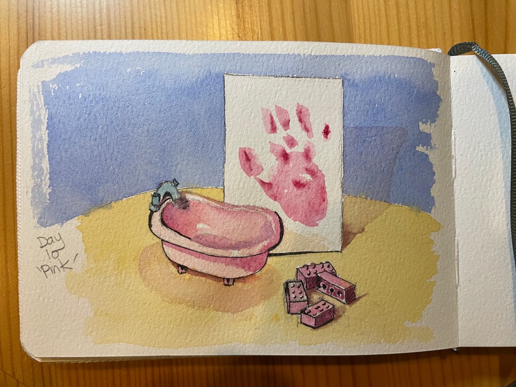 Luckily for todays prompt four young granddaughter’s mean Nana has always got something pink in their toybox!