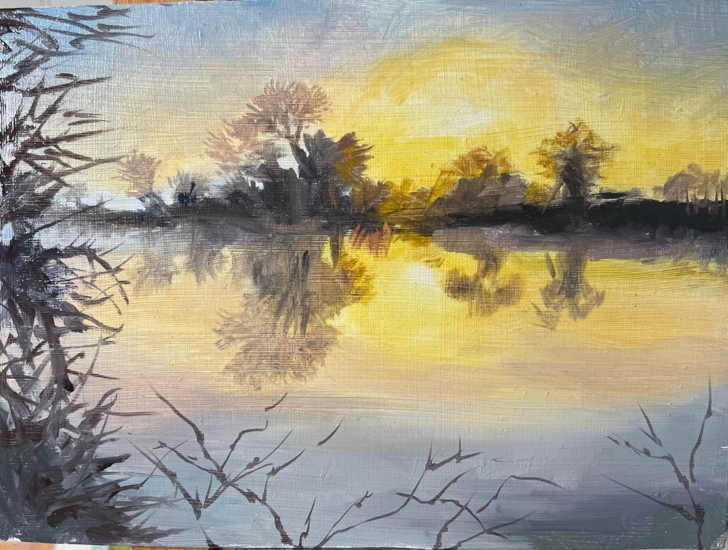 Finally this afternoon it was back in the studio and using a photo reference from the man behind the lens of the sunrise this morning at the Eye Bridge Wimborne.