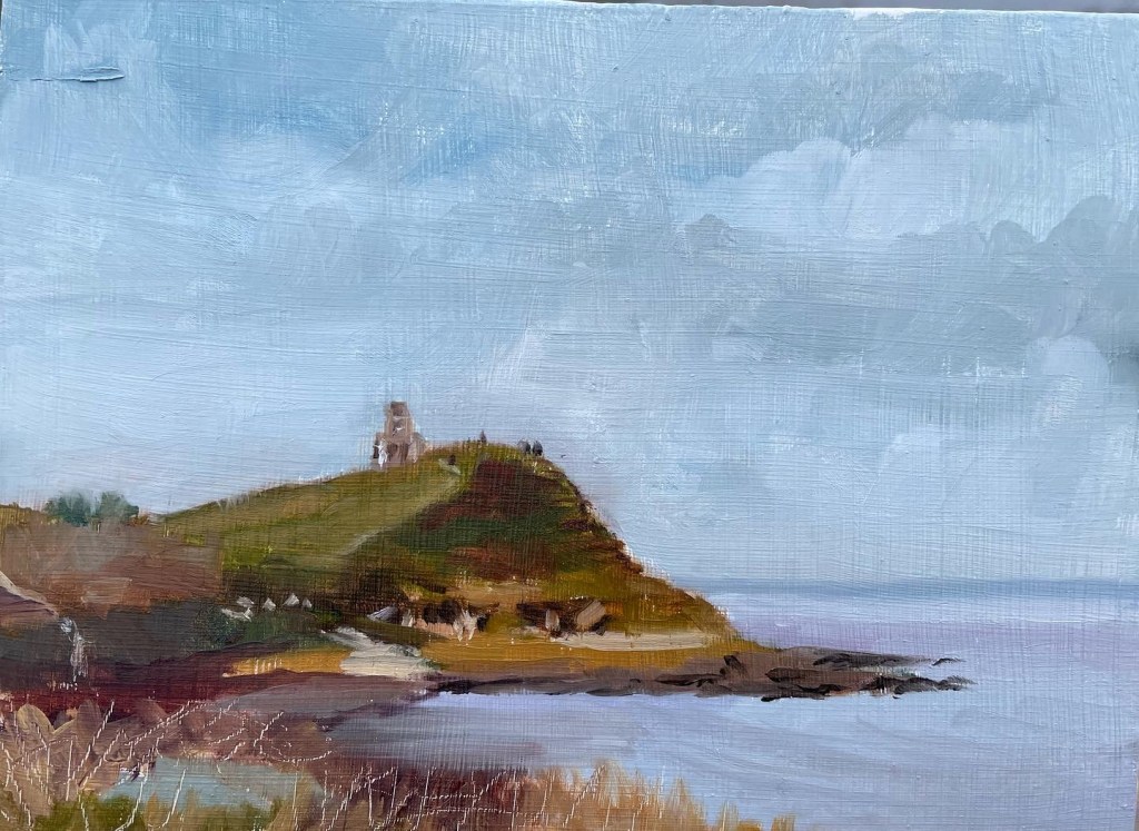 I have managed three new oil paintings. First up a little 8 x 6 plein air at Kimmeridge Bay on the Jurassic Coast looking towards Clavells Tower. It was bitterly cold, grey and flat light after an hour I couldn’t feel my fingers or toes!