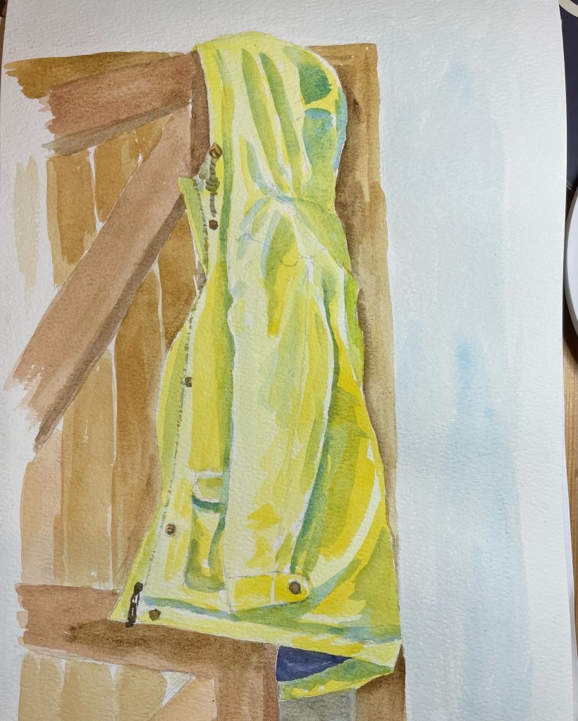 Day 18 Something you wear I chose my old seasalt raincoat in watercolour.