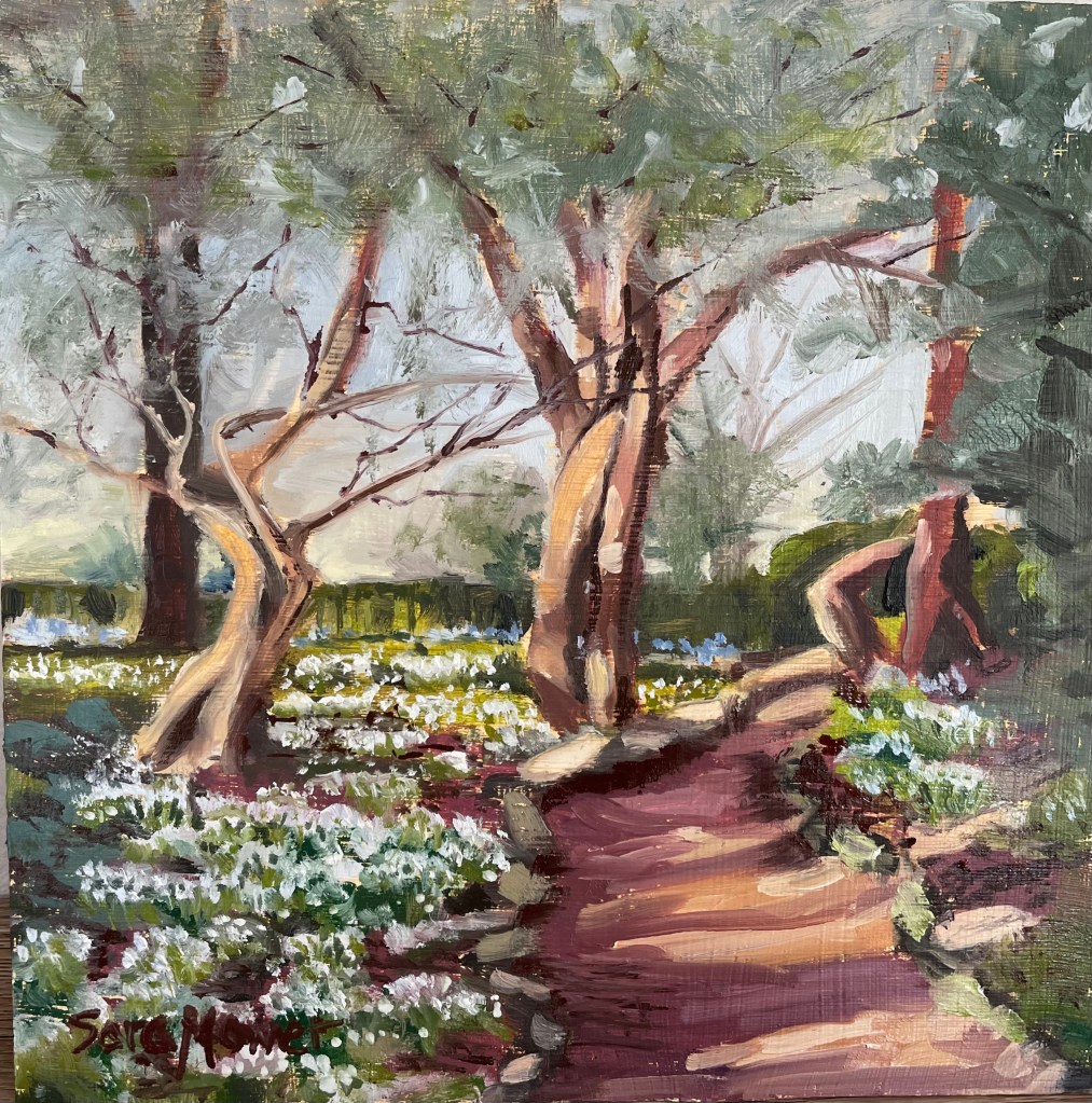 Snowdrops at Kingston Lacey Oil on primed wood panel 8 x 8 inches