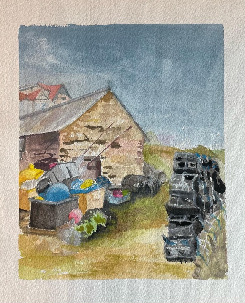 Lobster Pots Hope Cove Gouache on Arches A5 Watercolour Paper